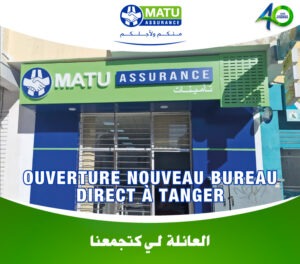 C’est avec fierté que MATU Assurance a annoncé l’ouverture de son bureau direct dans la ville de TANGER ! Adresse : ROUTE AL AWAMA BD AL