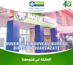 C’est avec fierté que MATU Assurance a annoncé l’ouverture de son bureau direct dans la ville d’OUARZAZAT ! Adresse : 174, TAGHMI ALJADID, ROUTE DE ZAGORA,